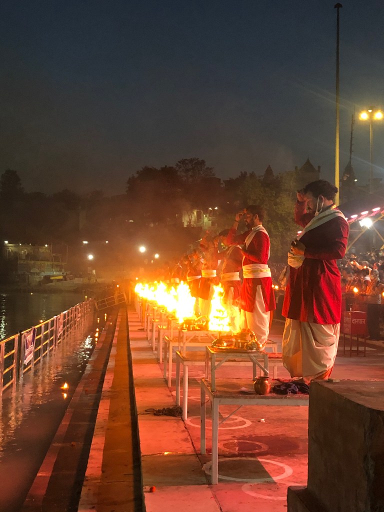 We were completely entranced by the Arati, and after the Arati ended, it took us some time to come back to this world. We took blessings from the Arati and the priest tied a holy thread to our wrists. Bhim and I made our way out and he gently said, ‘I am emotional right now about my father, I don’t know why you asked if I felt his presence’. ♥️