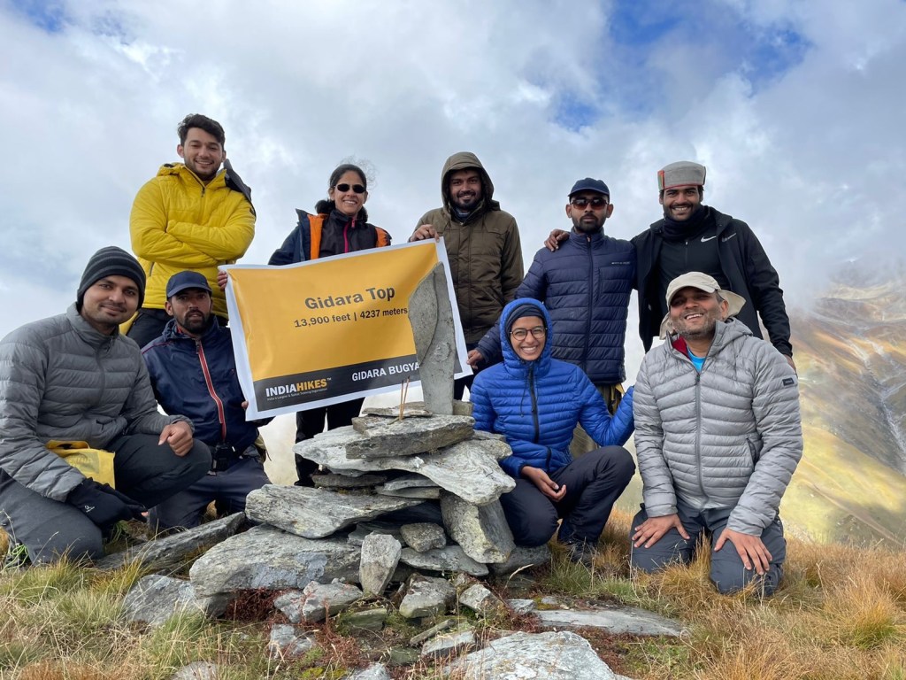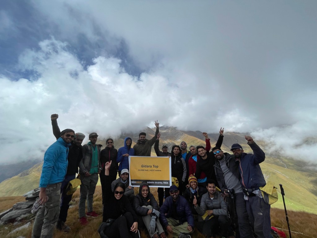 After the usual mandatory photo ops of clicking the team together and people taking individual pics of them holding the ‘Done Gidara Bugyal’ board, Khush gave us postcards to write to whom ever we wanted to, could be to ourselves, to someone else, we could carry it with us or give it to him so he would post it. This had become another norm for Indiahikes and it was a significant one. It started last year, with COVID and the mental health issues happening around us, being stuck, being quarantined at homes, worse was losses of loved ones, deaths to divorces to break ups. Human kind had gone through something humongous last year and it was still happening and this postcard was a gentle reminder that hope existed ♥️