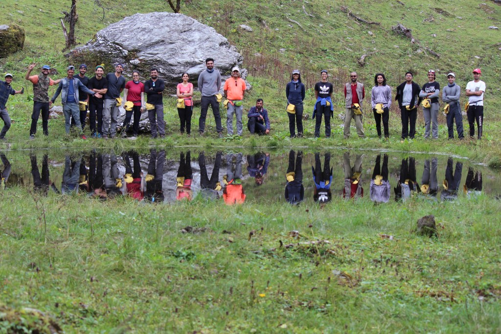 Isn’t it fantastic how the body and mind does a 180 degree turn? After reaching the top, everyone’s energy shot up with a lot of relief. The entire team was on top together. And the moment we all reached the summit, there was a beautiful rainbow like a blessing! After a harrowing morning of wading your feet in freezing water at 5 am, now it looked like it happened long ago.. And that’s the thing about human nature and tells us how we as a race survived and adapted since thousands of years while greater creatures perished and became extinct.