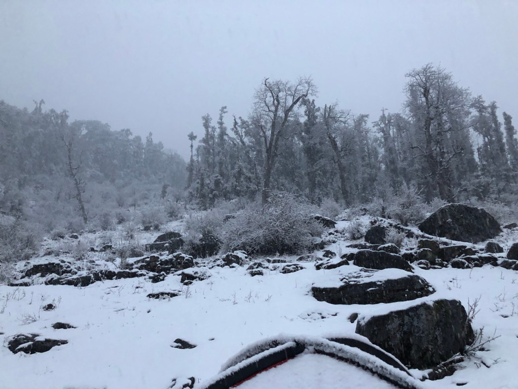 Exactly around midnight I heard that sound.. something falling hard on the tents, first slow, then hard and fast.. this was not rain, was it snow?? Freaking hell it was!! And it went on and on and on!! Was I in a dream? I was somewhere in between a dream filled sleep and tossing and turning in my bag hoping for more heat. It went on and I drifted off to sleep.