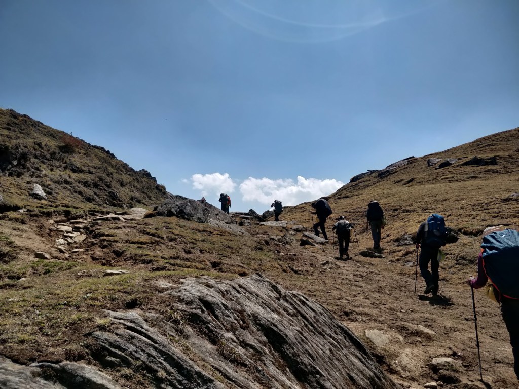 The next day was going to be the shortest as well as the ‘easiest’ as Nishant put it. In comparison to what we would go through, yes now in hindsight it would be definitely easy! Chandra decided she would offload her baggage for one day tomorrow and see if it helped. Uttamji had carried her backpack for sometime and she was already feeling guilty about it. We assured her that this was not her fault, her stomach was not reacting well in high altitude. And I could already see the shock in her face. This is a gal who did Rupin Pass and that is a damn tough trek. How could this happen to HER?